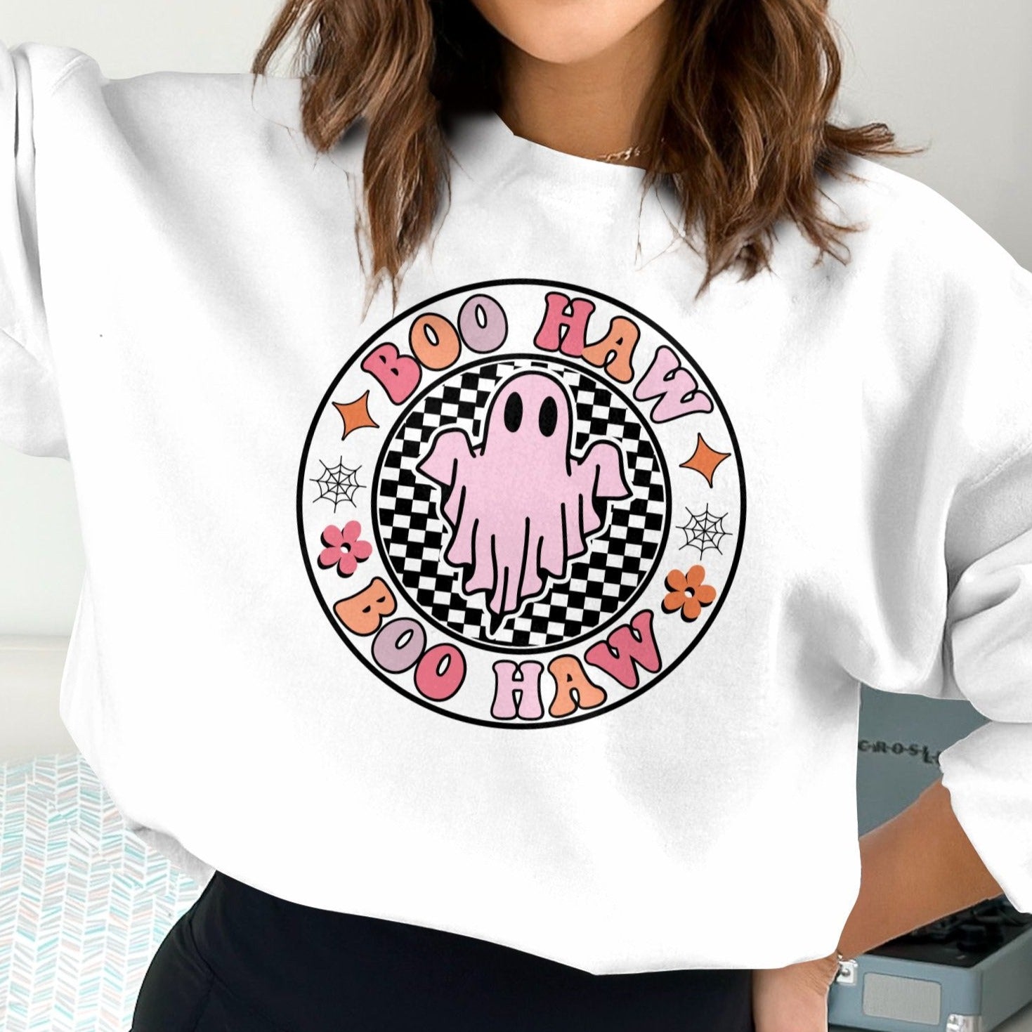 Introducing our Gildan 18000 Sweatshirt with a Retro Boo Haw Halloween Design – a perfect blend of comfort and vintage charm. Crafted to provide warmth and style, this sweatshirt brings a touch of nostalgia to your wardrobe just in time for Halloween.
