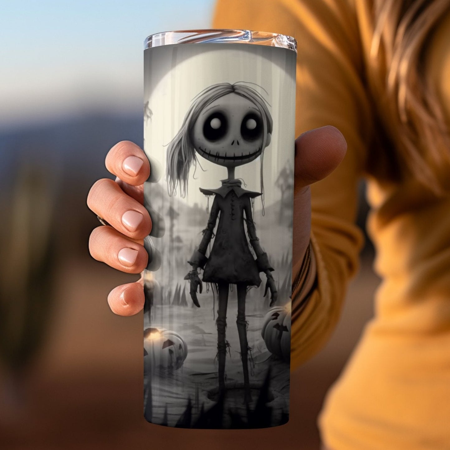 Dive into the world of eerie enchantment with our 20 oz sublimation tumbler, the perfect vessel for your chillingly delightful beverages. Unveil the mystery and indulge in your favorite drinks as you embrace the hauntingly captivating design that graces this tumbler.