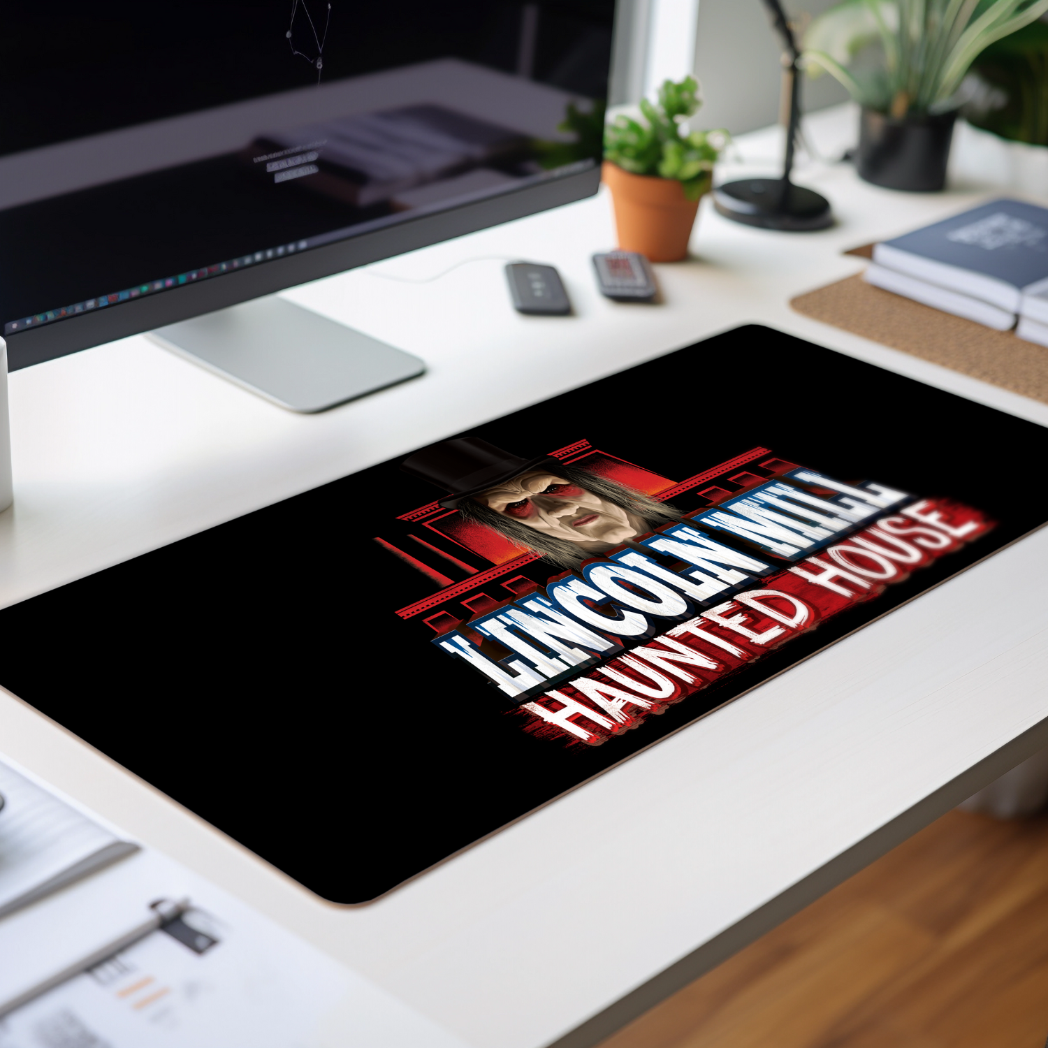 Upgrade your gaming setup with our Lincoln Mill Haunted House Gaming Mat – a fusion of functional design and hauntingly stylish imagery that captures the essence of the haunt.