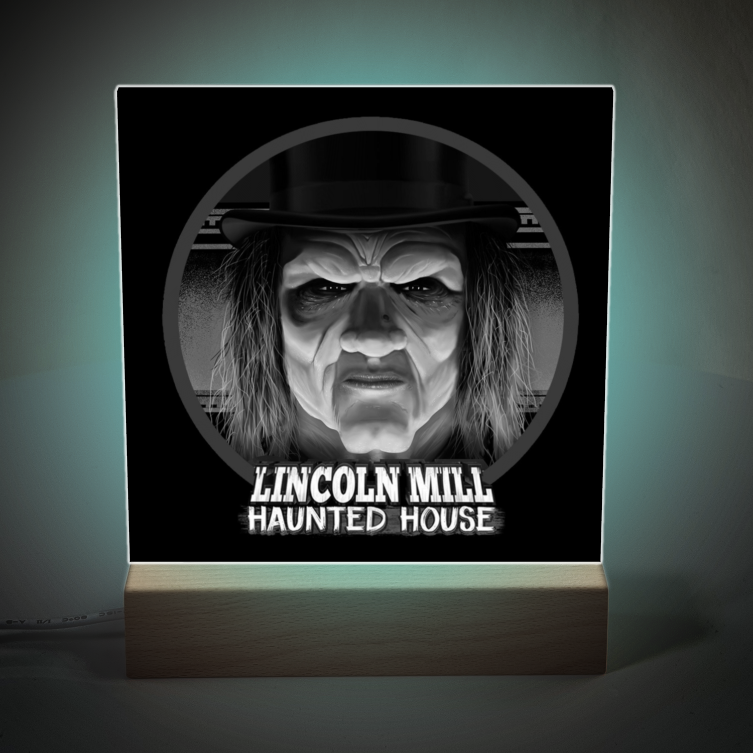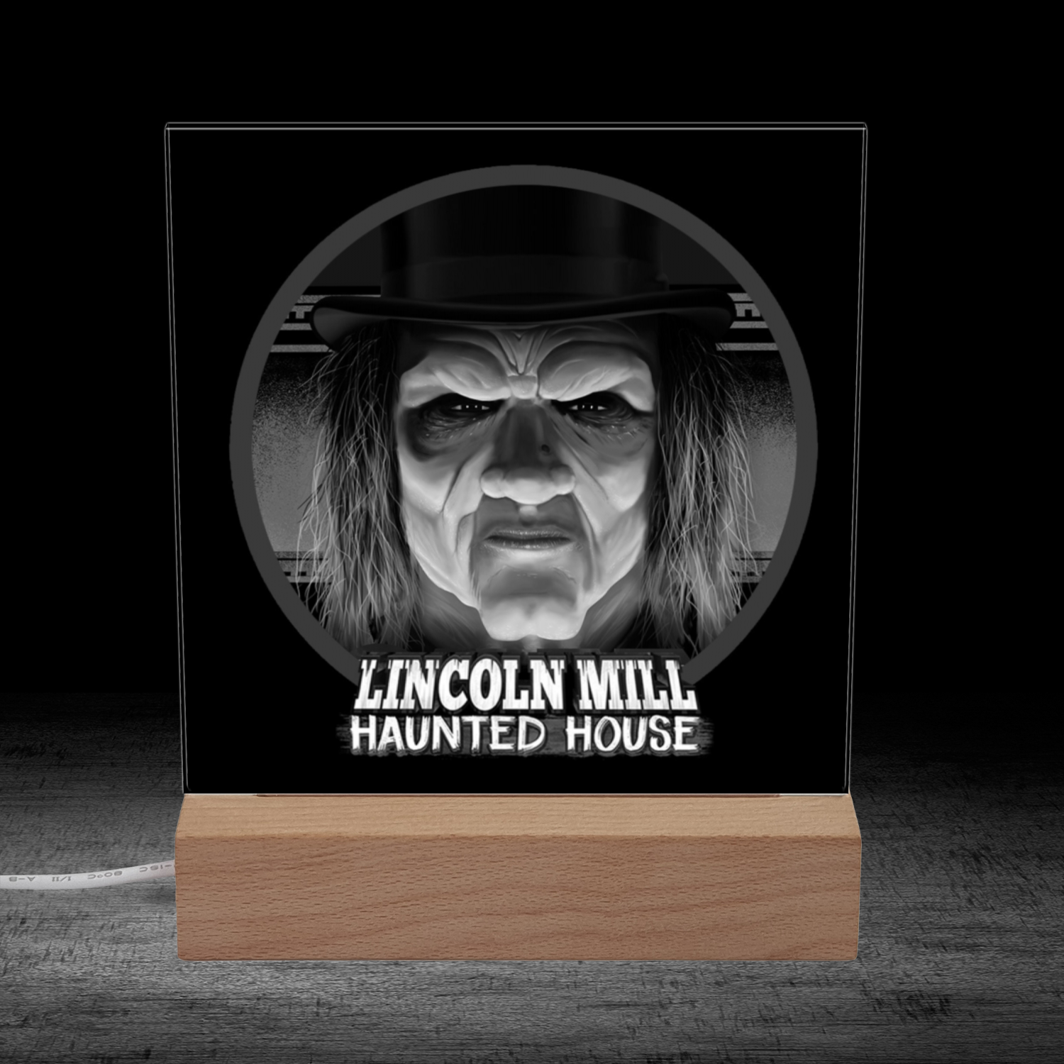 Elevate your space with our Square Acrylic Plaque, featuring the haunting image of Viktor Kane from Lincoln Mill Haunted House. This captivating piece merges modern technology with profound sentiment to create an unparalleled addition to your decor.