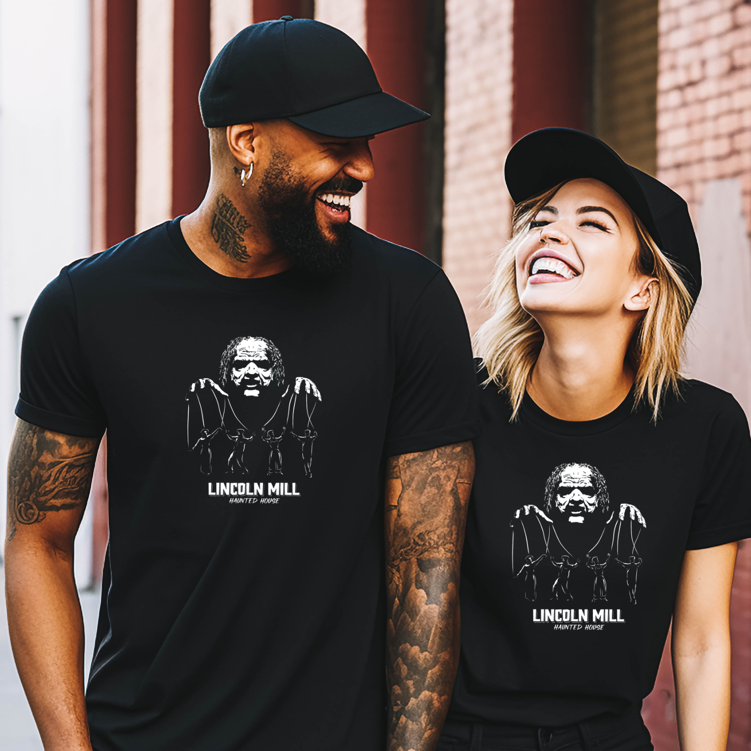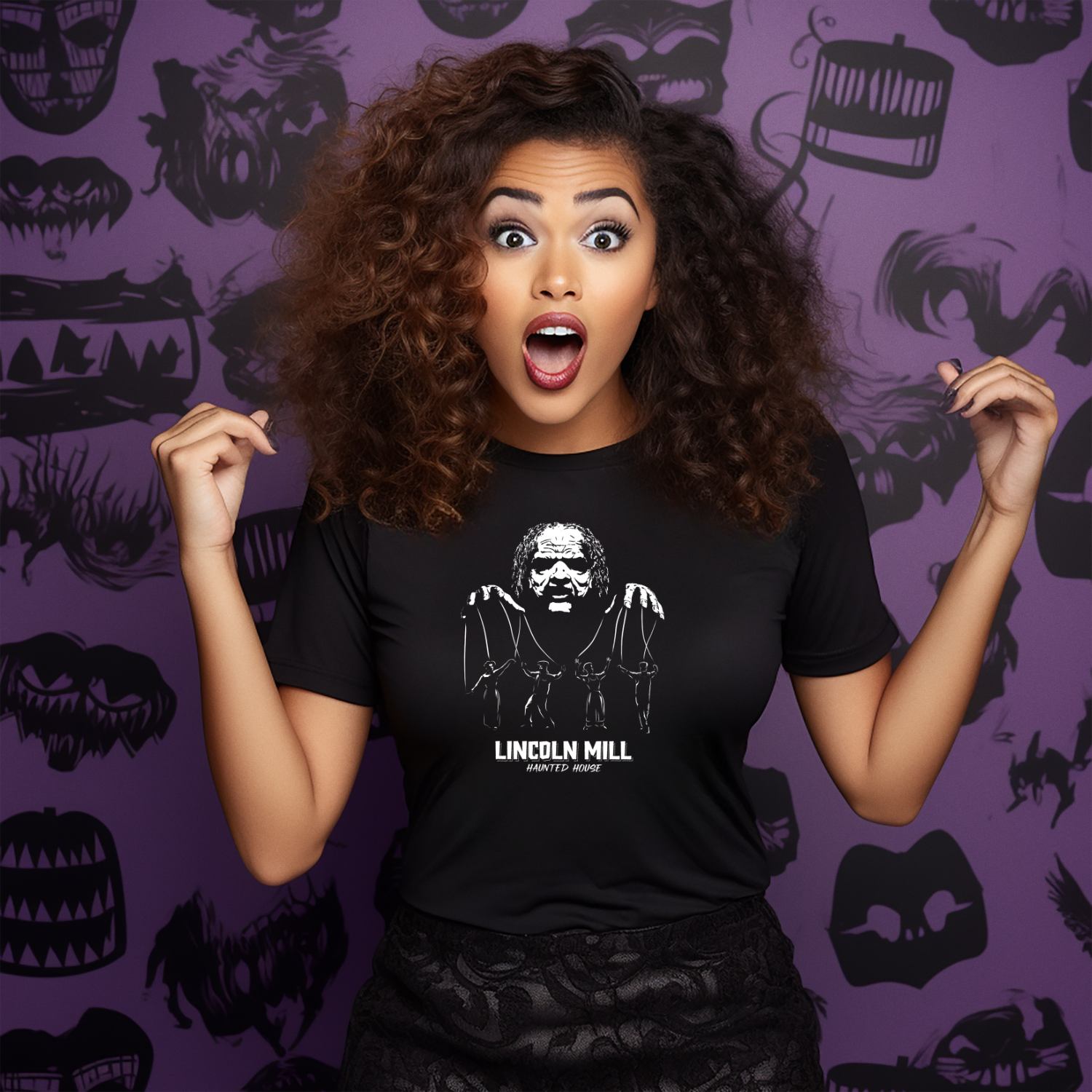 Unveil the chilling history of the Lincoln Mill Haunted House with our hauntingly captivating t-shirt featuring the infamous Viktor Kane as the malevolent puppeteer who still lurks within the venue's shadows. Delve into a tale shrouded in mystery: during the Great Depression in the 1930s, the mill's owner, Viktor Kane, subjected his workers to unspeakable torment and sinister experiments. Their souls forever tethered to the mill, the restless spirits continue to haunt its halls.
