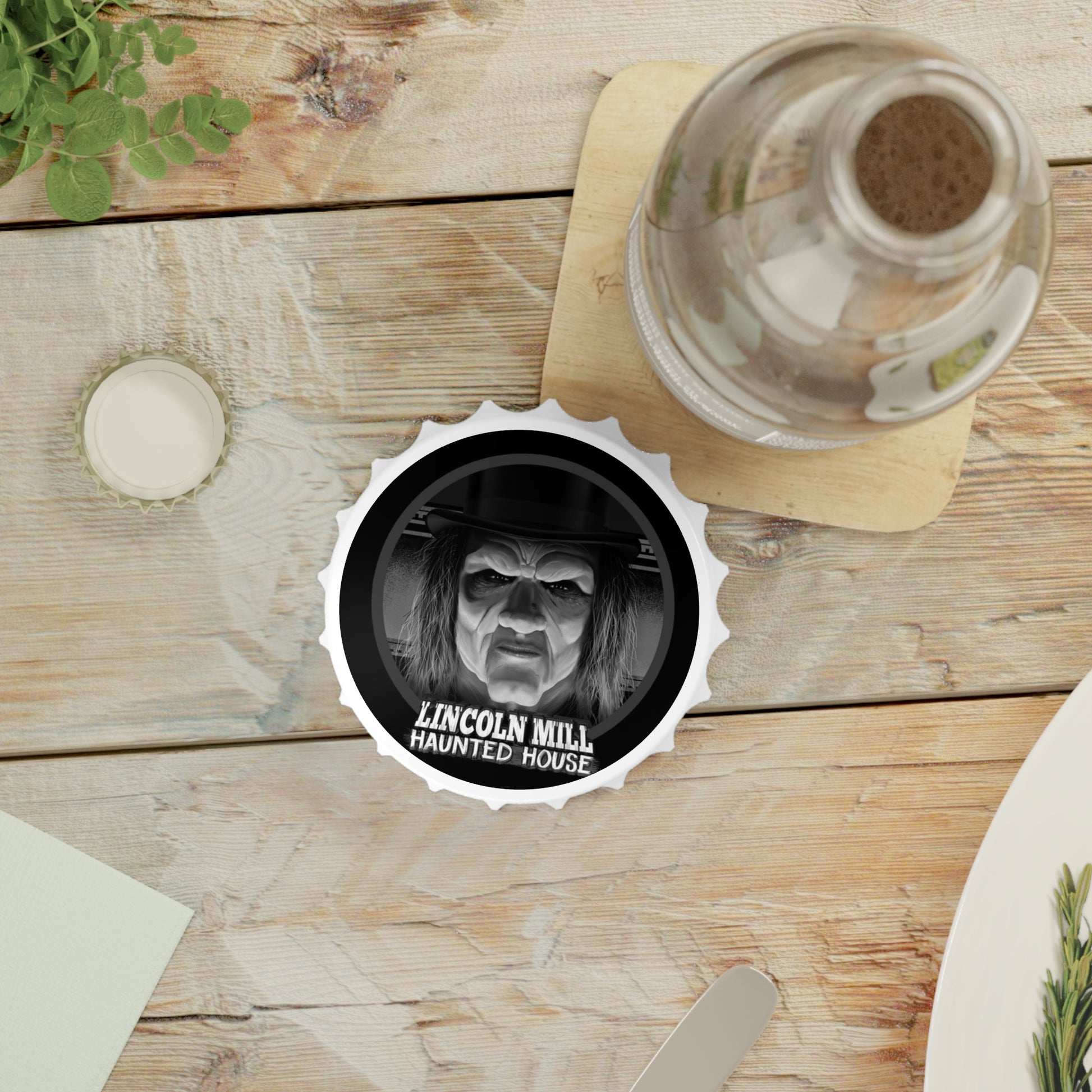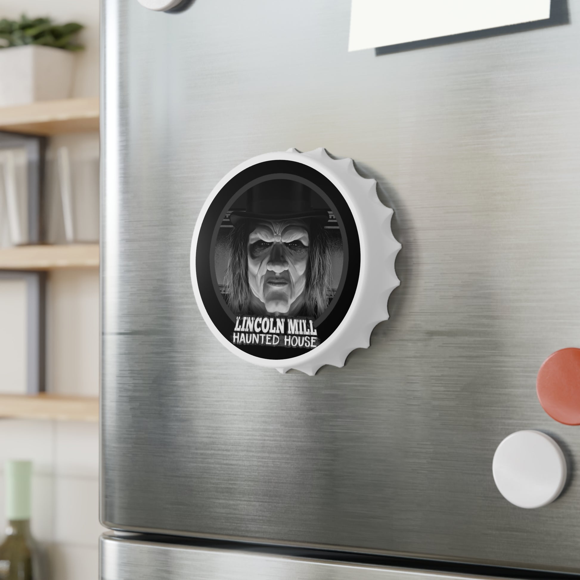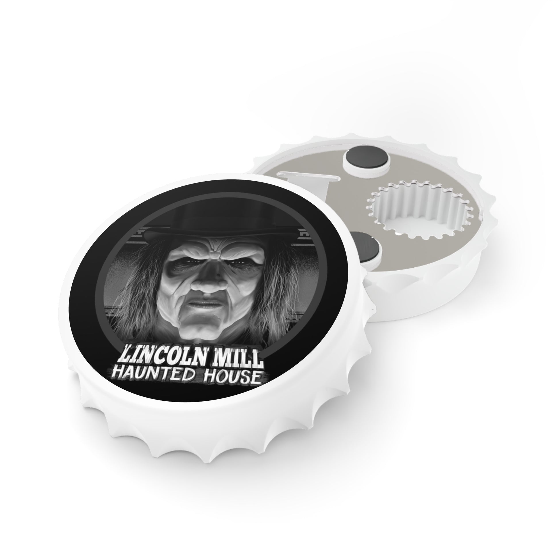 Dive into the eerie enigma of the Lincoln Mill Haunted House with our exclusive Viktor Kane Haunted House Bottle Opener. This unique bottle opener showcases the chilling visage of Viktor Kane himself, capturing the mystique of the old mill's haunting history.